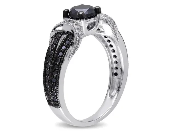 1.00 Carat (ctw) Black & White Diamond Engagement Ring in Sterling Silver