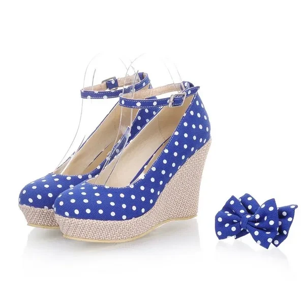 Brand Name : SaraIris Pump Type : Ankle Strap Heel Type : Wedges Upper Material : Denim Heel Height : Super High (8cm-up) Fit : Fits true to size, take your normal size Style : Sweet is_handmade : Yes Fashion Element : Butterfly-knot Insole Material : PU Occasion : Party Lining Material : Synthetic Season : Spring/Autumn Toe Shape : Round Toe Outsole Material : Rubber Item Type : Pumps Closure Type : Buckle Strap With Platforms : Yes Platform Height : 0-3cm Gender : WOMEN heels height : about 9.5cm platform : about 2.5cm