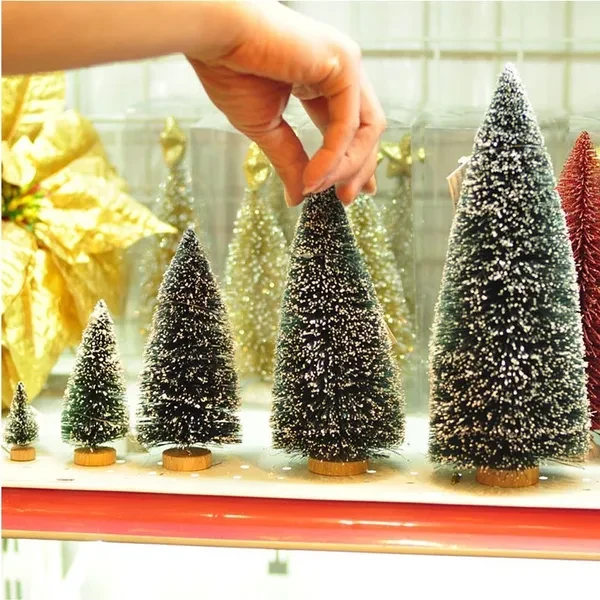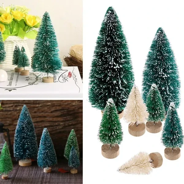 5 Pcs Mini Sisal Bottle Brush CHRISTMAS Tree Santa Snow Frost Village Putz House Xmas Decorations