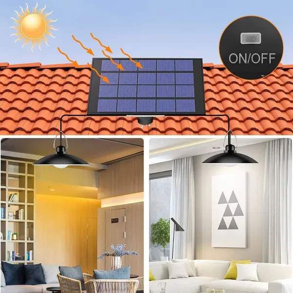 ►NOTES: 1.When using for the first time, you need to turn on the button behind the panel to charge successfully 2.Please let it under sunshine to charge it for several hours when you use it at first time 3.The efficiency of the solar panel depends on the weather,the strong sunshine it has,the better efficiency it will be,the efficiency of the panel will be weakened on cloudy day,the longer sunshine it has,the working time will be longer The specifications Product Name: LED Solar Pendant Light Brand: TRLIFE LED type: upgrade SMD LED Quantity: Each head with 20 LEDs Solar Panel: 5V 15w for 4 headlights Led light color: warm white / white shade Material: PC shell Material: PC + ABS Operating mode: automatically turn on at night until the power is off Installation steps: 1. Connect the solar panel connector line first, 2. Install the solar panel and set the outdoor sun exposure position 3. Hang the lamp cover housing and set the lighting position 4. Distribute the 3 meter extension cable Specification: 4 options: single head, two heads, three heads, four heads LED beads: 20 pieces, 40 pieces, 60 pieces, 80 pieces LED light color: warm white, white Color Temperature (warm light): 3000K - 4500K Color Temperature (white light): 6000K Waterproof: IP65 Lampshade Material: PC Shell material: PC + ABS Package listing:(Optional) 1 x Solar Panel 1/2/3/4 x Heads 1 x Extra 3 meters Cable 1 set of screw accessories