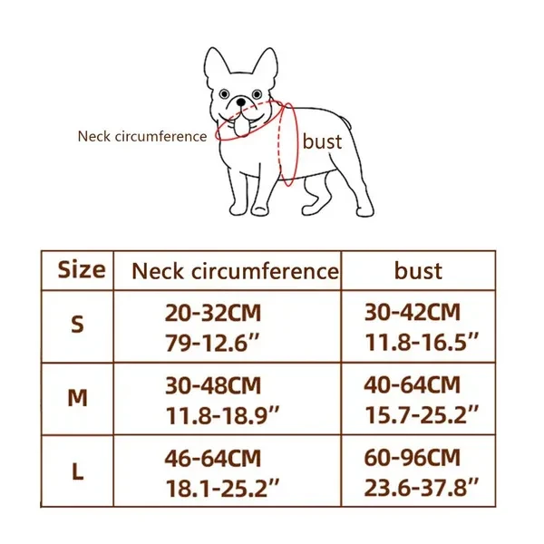 Please carefully measure your pet's bust and neck circumferences before purchasing.