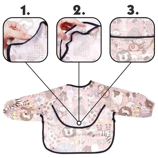 Hello!Welcome to our store! Product Description 1.Baby Children Long Sleeve Waterproof Feeding Apron Boy Girl Bib Variety Designs 2.Ideal to use for baby self feeding 3.Environmental healthy high quality waterproof fabric 4.Elasticated cuffs and Adjustable tie fastening comfortable to wear 5.Lovely cartoon pattern best fit for babies 6.Suitable for babies 0-3year old Size:One Size, One Size:Length :41cm Sleeve:36cm Chest:36cm Style:A,B,C,D,E,F,G,H,I,J,K Package Included:1 x Waterproof Baby Apron Bib Notice 1. Please read the size chart before purchasing, due to manual measurement there can be a little errors. 2. A certain color aberration may caused by weather, light shooting ability and a different display resolution, which is not taken for quality issues.