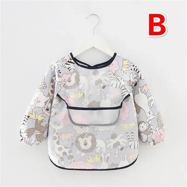 Hello!Welcome to our store! Product Description 1.Baby Children Long Sleeve Waterproof Feeding Apron Boy Girl Bib Variety Designs 2.Ideal to use for baby self feeding 3.Environmental healthy high quality waterproof fabric 4.Elasticated cuffs and Adjustable tie fastening comfortable to wear 5.Lovely cartoon pattern best fit for babies 6.Suitable for babies 0-3year old Size:One Size, One Size:Length :41cm Sleeve:36cm Chest:36cm Style:A,B,C,D,E,F,G,H,I,J,K Package Included:1 x Waterproof Baby Apron Bib Notice 1. Please read the size chart before purchasing, due to manual measurement there can be a little errors. 2. A certain color aberration may caused by weather, light shooting ability and a different display resolution, which is not taken for quality issues.