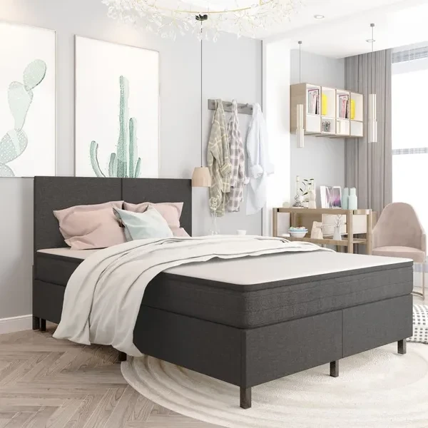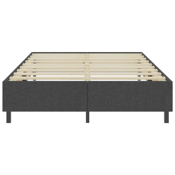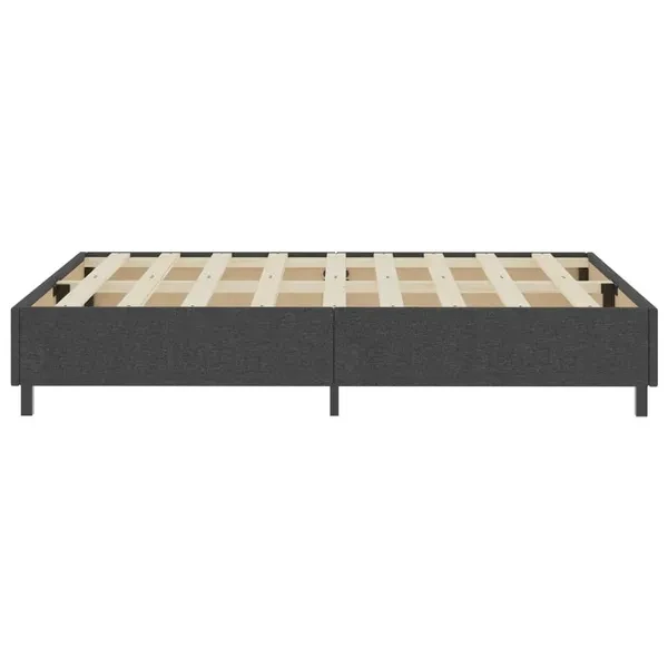 This bed frame is characterized by a restrained and at the same time elegant design and gives your bedroom decor a touch of elegant charm. The bed frame made of MDF and metal is extremely robust and durable. In addition, the bed, which is upholstered with durable, hard-wearing fabric, has an inviting appearance and is easy to clean. This bed is designed for a mattress of 180 × 200 cm. Please note that the headboard and mattress are not included. The bed is easy to assemble. You will find the right mattresses and headboards in our shop. Color: gray Material: fabric (100% polyester), MDF, metal Overall size: 201 x 180.5 x 35.5 cm (L x W x H) Suitable mattress size: 180 x 200 cm (W x L) (mattress not included) No headboard Assembly required: Yes