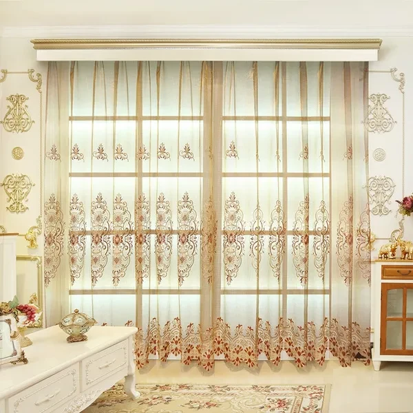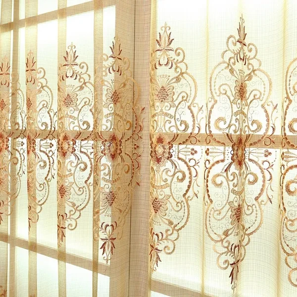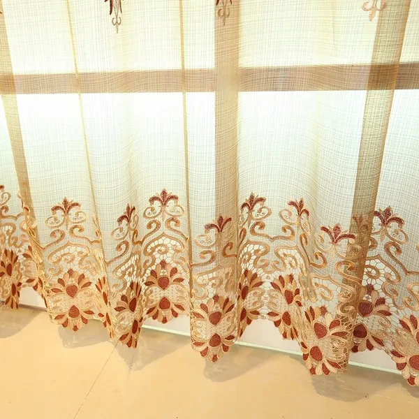 Luxury European Embroidered Sheer Curtains for Living Room Embroidered Curtains for Bedroom Embroidered Voile Tulle Curtains for Kitchen(1 Piece, Rod Pocket)