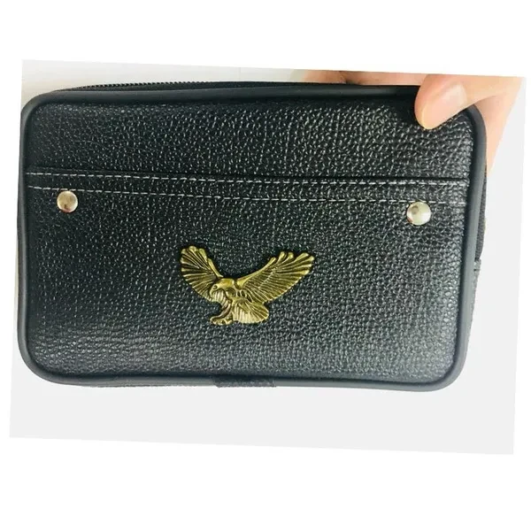 Men Fashion Fanny Pack Eagle Metal Mark Casual Wasit Pack Mobile Phone Bag Black Brown Wallet