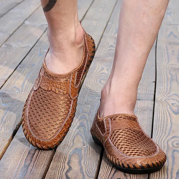 Men's Casual Outdoor Lazy Shoes Breathable Leather Sandals Beach Shoes