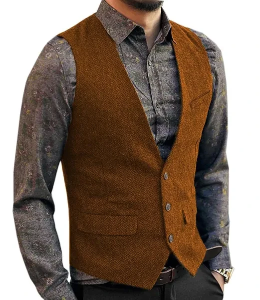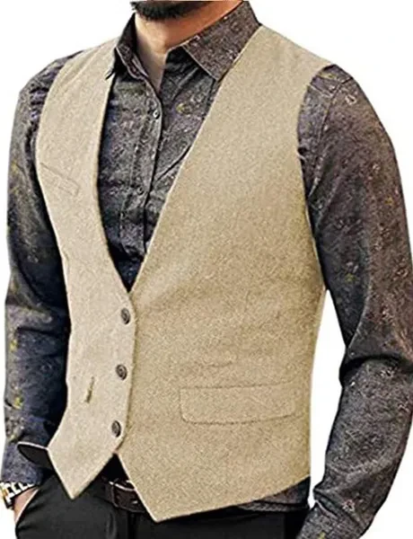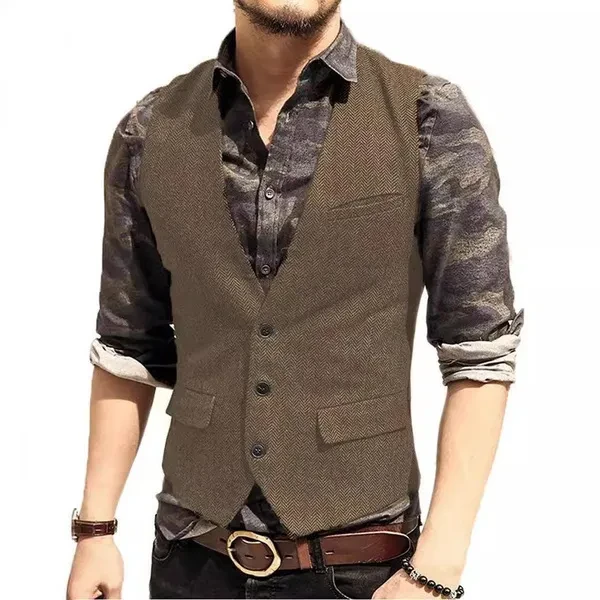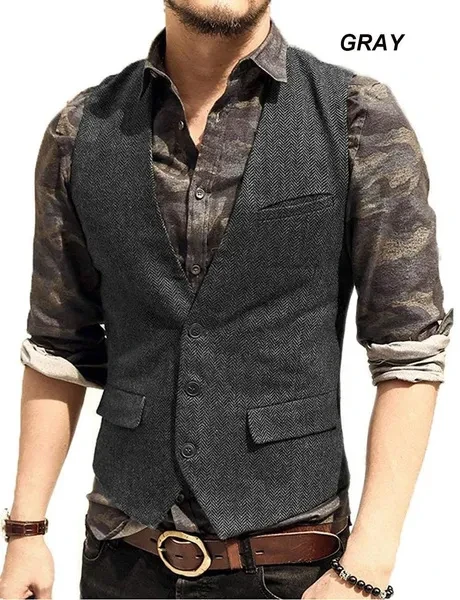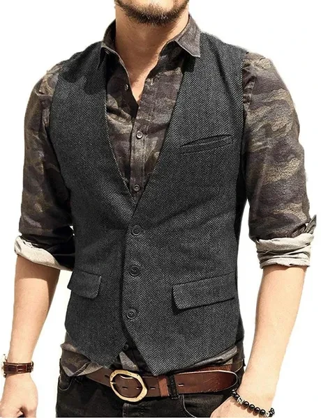 Men's Fashion Suit Vest V-neck Casual Waistcoat Single-breasted Slim Fit Vestcoat Sleeveless Jacket for Men