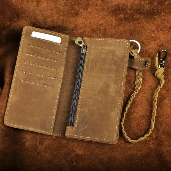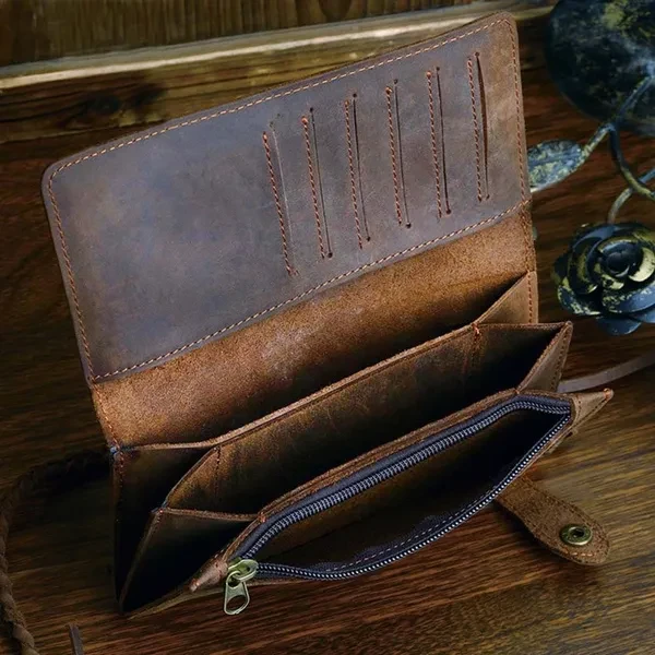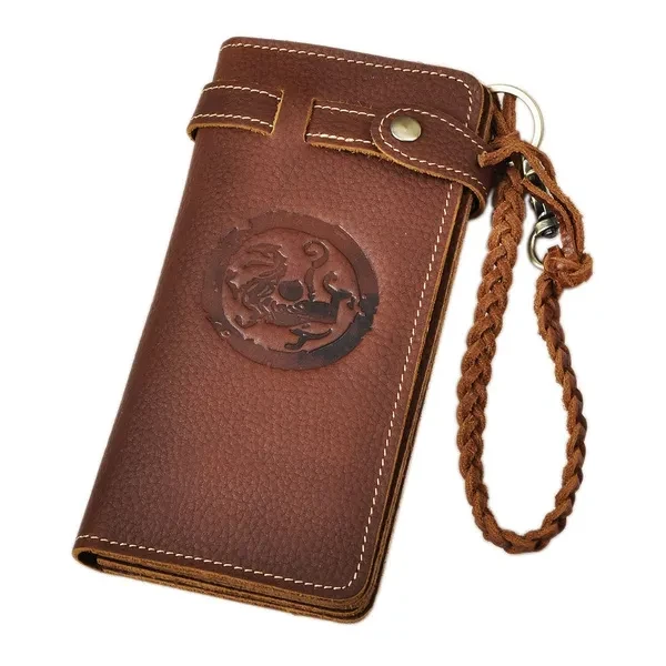 Product NO: W1013(3377) Material: Genuine Leather Size: L18cm×W2cm×H9cm (7"×0.8"×3.5") Attention: Color " Dark brown" and " Wine & Wine" have dragon embossed, the other colors are plain and doesn't have dragon embossed. Structure: This is a top genuine leather wallet for men come with a few card slots, zipper coin cases as well as cash holder. You'll fall in love with this wallet. Please be noted: This is genuine leather products, it usually come with the leather smell and it'll fade out as time going. It's also easy to get scratches on the surface, please understand, thanks.