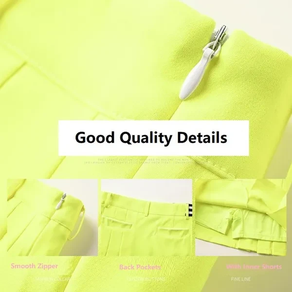Craft of Weaving : TAT Department Name : Women Fit : Fits true to size, take your normal size Model Number : DG019 Pattern Type : Striped Gender : WOMEN Material : POLYESTER,SPANDEX Origin : Mainland China CN : Guangdong Item Type : shorts Color classification : Black, White, Gray, Pink, Yellow Applicable object : female Clothing classification : golf skirt, Golf Skorts, Sports Culotte Feature 1 : Pleated, Anti-sweat, Breathable, Quick-dry, Elastic, Slim Fit Feature 2 : Anti-exposure, High Waist, Casual, Striped, A-lined