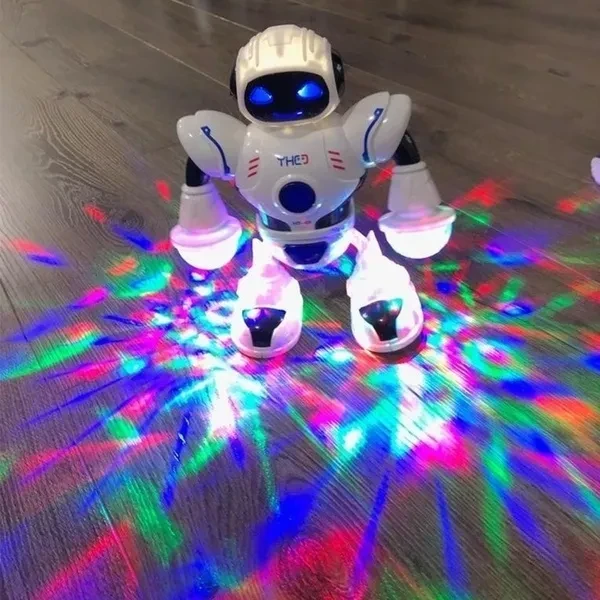 Feature: Cool flash lights display, it will be more beautiful at night This robot is responsive, moves and rotates with its legs and hand spinning action, arms and legs move with the song(Left and Right) Dual wheel foot balancing, the robot can easily navigate his surroundings Best Christmas gift for your friends and family. Fun dancing robot electronic toys with music lightening toys gift for kids children Specification: Material:Plastic+Electronic component Color:As the picture Gender:Unisex Battery:3*AA(Not included) Product Size:19.5*8*22cm Function:Lights,Music Package Included: 1*Dancing Robot