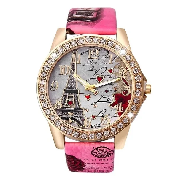 New Fashion Effiel Tower Heart Printed Wristwatch Quartz Watch Gifts