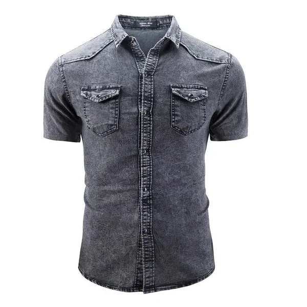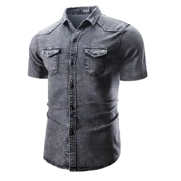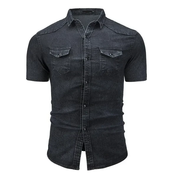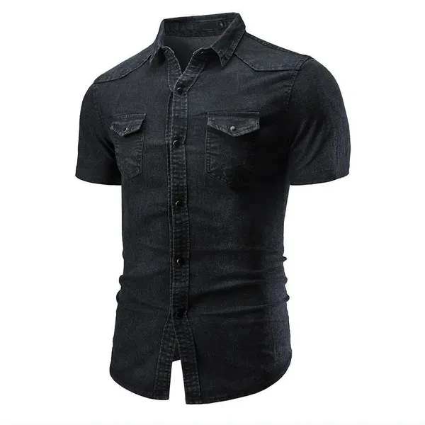 New Mens Casual Shirts Slim Fit Short Sleeves Dress Denim Shirts Jeans Tops