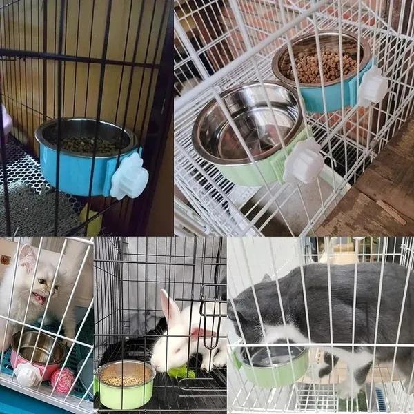Pet Feeder Dog Bowl Stainless Steel Food Hanging Bowl Crates Cages Dog Parrot Bird Pet Drink Water Bowl Dish Accessory