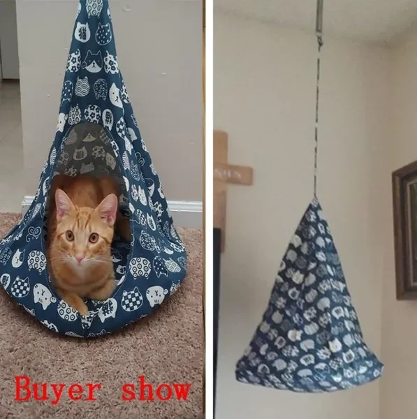 Feature High quality and environmentally friendly linen fabric, soft and comfortable, breathable and durable.; Easy to wash,and you can choose hand washing and machine washing.; Portable and hangable pet nest, convenient and practical, foldable; Pets can be shaken like swings on top to add fun; Suitable for cats, small dogs, and other small pets Specifications Material:Linen + sponge Shape:Conical Specifications: 1 , 2 , 3 , 4 , 5 Size:S,M S:35x35x45cm(13.4x13.4x17.3inch) M:46x46x60cm(17.7x17.7x22inch) Package include: 1x PC