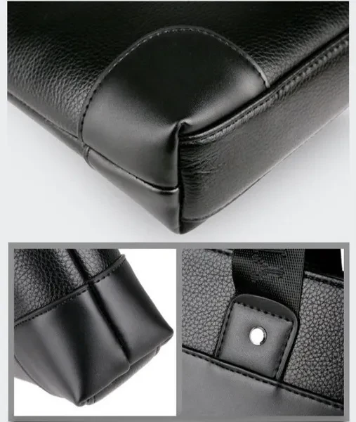 Material: High Quality PU leather Lining texture: polyester Style: Business Bag shape: cross section square Package internal structure: ID bag, mobile phone bag, zipper pocket, computer pocket Strap root number: single Lifting parts: telescopic handle Opening method: zipper Outer bag type: inner patch pocket Size: 26*37*7cm/ (suitable for 14 inch laptop) Color: Black/Brown ​Note: due to the different display and light, there may be a slight color difference