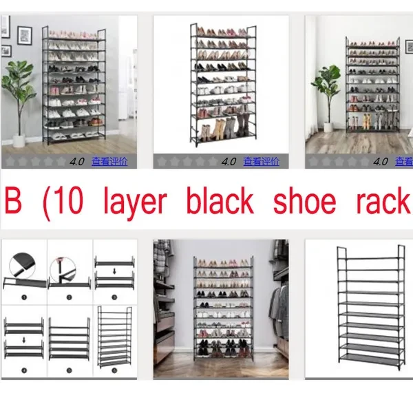 Features: styles A: Non-woven 9-story shoe cabinet - Material: metal tube, non-woven cover - Tube thickness 0.22mm Tube diameter 12mm - Expanded size 88*28*160cm Packing: 90*20*10 cm Wide range of uses - Large capacity, easy assembly and disassembly, space saving, very good appearance, beautiful space, very good extra product, suitable for your room, living room, balcony, storage room or garage. Stable metal frame - Metal structure is rust-proof, very strong and stable. Each wall can withstand loads of up to 5 kg under a uniform load. The maximum load of the boom is 25 kg to better meet your needs. Non-woven resistant cover - Covers 95G of non-woven fabrics, breathable, moisture-proof, flexible, lightweight, non-toxic, odorless. Rolling Doors - Designed with 2 rolling doors, it is easier to open and close doors and dust to protect your belongings. Comes with a Velcro and zip to prevent the door from falling. Sewing zipper for more wear-resistant sturdy plastic parts - good quality, durable, sturdy and odorless plastic parts, heat resistant and easy to assemble Details: - Tired of stacking your belongings anywhere, never finding a place for them? This beautiful fabric wardrobe may be the solution! With its perfect exterior finish, it will fit a small room or match the décor of your home. - This wardrobe has a wardrobe and a shelf for storing clothes: your pants, t-shirt or hanging your shirt without creases. You can also store it in the living room, bedroom, storage room or garage as an extra storage space for jackets, bags, scarves, gloves, hats, etc. - Made of non-woven fabric and fixed by metal tube, the cabinet is stable and can be hung. It is easy to clean and move. This is definitely a good choice for storing accessories. styles B: 10-layer black shoe rack Features: - Material: metal tube, Non-woven cover - Tube thickness 0.22mm Tube diameter 12mm - Expanded size 100*30*176cm Packing: 90*20*6 cm note: - If it is difficult to insert a pipe into a plastic part, it is recommended to put the plastic part in hot water. - To extend the shelf life, do not expose the product to the sun for a long time. - Store the product in a cool, dry place to avoid mold. - Do not disassemble after assembly.