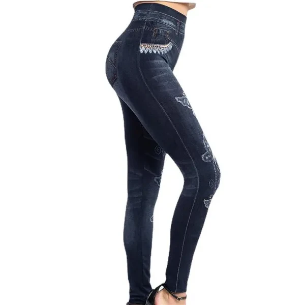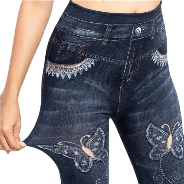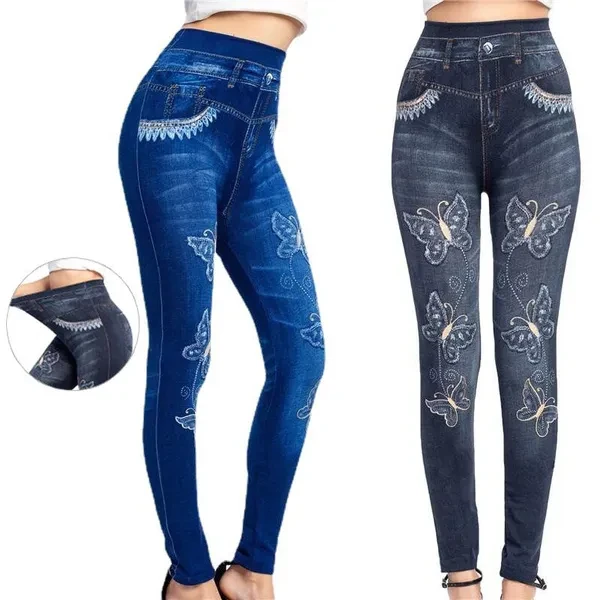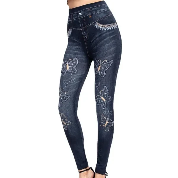 Women High Waist Jeans Leggings Butterfly Print Ankle Length Pants Super Stretchy Skinny Imitation Jeans Leggings