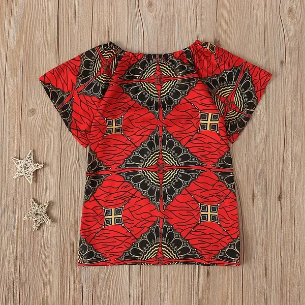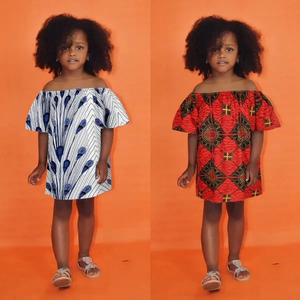 1-6 Years Baby Kid Girls Clothes African Boho Style Printed Off Shoulder Dress Top