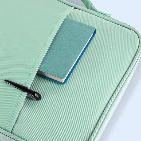 Features: Front storage bag, can hold infrequently used small items for easy access. Bidirectional zippered designing, tightly closed, easy to open and close. The interior is designing with thickened fluff, and elastic fixing band is added to protect it from scratches, providing double protections. 180 degree opening and closing design, easy to store accessories such as tablets, laptops, power supplies, etc. The inner storage pocket can hold small items such as data cables, charging cables, memory card and more. Quality materials, effective waterproofing, precision stitching, fine workmanship, and durability. Specifications: Material: Carbon Fiber Color: black, green, blue, white, pink (optional) Suitable Size: 10.8-11inch, 12-14inch(optional) 10.8-11inch Size: approx. 300x235x25mm/11.8x9.2x0.98inch 12-14inch Size: approx. 345x254x23mm/13.5x10x0.90inch Note: Please allow 1-2cm errors due to manual measurement. Please allow for slight color differences due to different display resolution. Package includes: 1Pc Protective Laptop Bag
