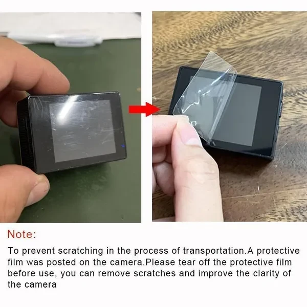 1. To prevent scratching in the process of transportation, there is a protective film on the camera and camera shell. Please tear off the protective film before use, you can remove scratches and improve the clarity of the camera.
