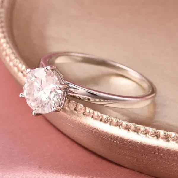 GEMSTONE: moissanite METAL: This gorgeous engagement rings is made of white gold which makes it truly shine. GIFT PACKAGING: Your item arrives in a complimentary blue Gift Box, appropriate for Safekeeping or a timeless Gift for any special occasions anniversary, engagement, weddings, party, holidays and other. WARRANTY PROGRAM: Buy with 100% confidence as all your Jewelry is covered under 6 months Warranty Program limited to manufacturing defects. Product Details: Color: White Material Gemstone Stone 1 Details: Stone Name: Moissanite Shape: Round Shape Color: Multiple Colors Creation Method: Synthetic Treatment Method: Not Treated General Jewelry Care Tips: 1. Avoid rough handling with all gemstones and store jewelry separately from one another to avoid scratching. 2. Lotion, hairspray and makeup may also cause discoloration of jewelry. When applying these items, wait until they have dried before donning your jewelry.