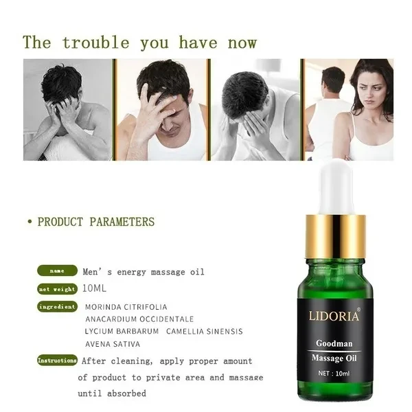 Description: 1.Contains a variety of essential oils, which can effectively adjust the mechanism of the men, so that men restore the normal mechanism. 2.Increase penis length and size, stimulate blood vessel enhance self-confidence and performance. 3.Harder, longer and stronger. 4.Impotence, premature ejaculation, sexual dysfunction, low libido, slow growth itself leads to poor development of the penis, weak erection, ejaculation, weak intensity have good regulation. 5.Improve the quality of sexual life and enhance your performance, she is crazy for you. Specifications: Gender:Men NET WT:10ml Shelf life:3 years Country/Region of Manufacture:China Skin Type:All skin types Size Type:Full size Age Group:Adults Package included: 1 x Penis Enlargement Essential Oil Note: 1.Please allow 1-3mm differs due to manual measurement. 2.Due to the different display and different light,the picture may not reflect the actual color of the item. Thanks for your understanding.