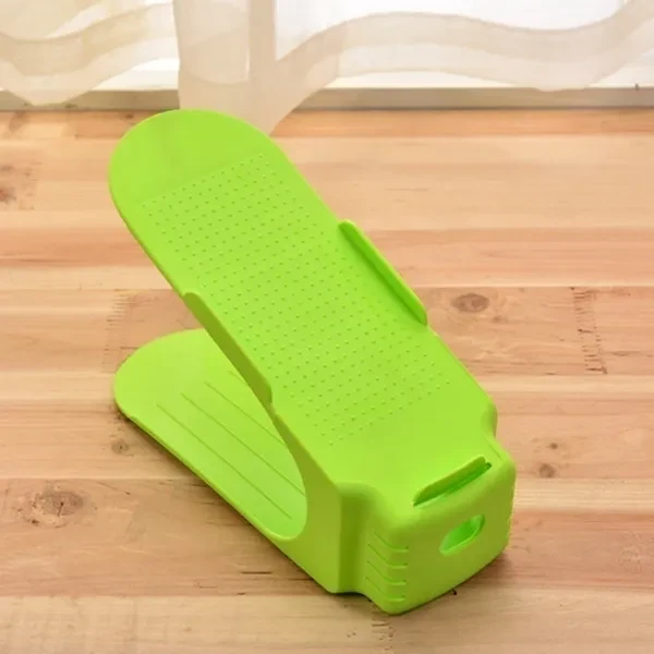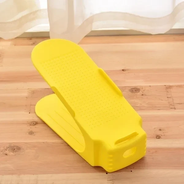 Features: Lightweight and compact Made of heavy duty plastic Protect the shoes not pressed deform Effectively use space more than twice the space, incorporating more convenient! Shoes upper head out, the lower head inward, get more convenient! Size:as the picture show Color: purple,beige,black,pink,red,blue,green, yellow Package includes: 10 x Shoes Shelfs
