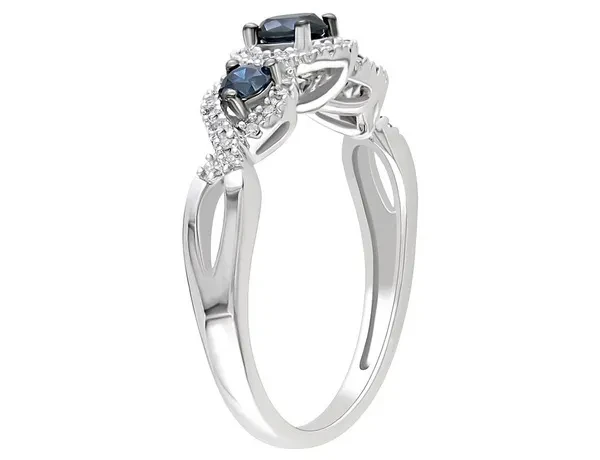 1/2 Carat (ctw) Blue & White Diamond Three-Stone Infinity Ring 14k White Gold