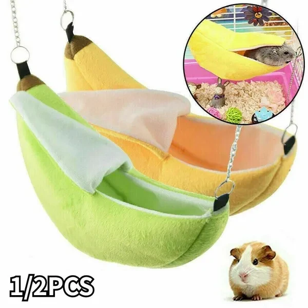 Hamster Banana Shaped Hammock Warm Squirrel Hedgehog Small Pet Gerbil Rat Mouse Hanging House Cage Nest w/ Chain Description: THIS HAMSTER SWING Features Cute Banana Design;Small Animals Cotton Cage Sleeping Nest,Best for Bed, Rat ,Hamster, Toys Cage Swing Parameters: Name: Nest for Small Pet Style: Banana Models Color: Green, Yellow The main material: Cotton Flannel Stuffing material: Sponge For pet type: Hamsters Size: about 20 * 6.5cm/7.87 * 2.56in (for hamsters) Packing: OPP bag Package Include 1 or 2PCS * Small Pet Hammock