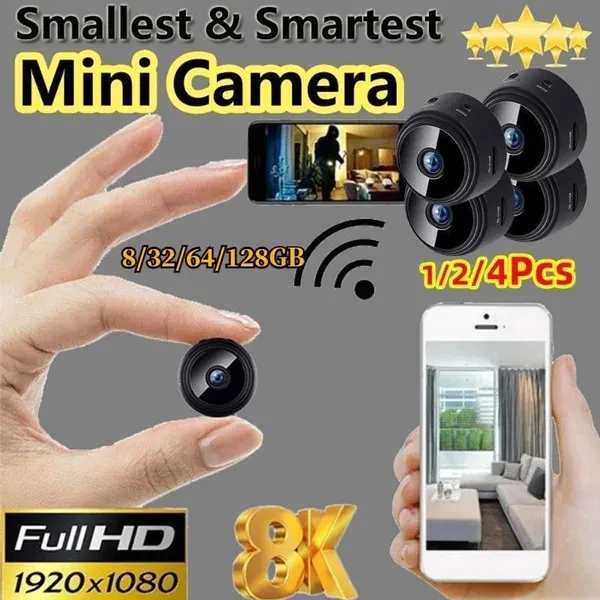 124Pcs Upgraded Best 8K Camera Mini WiFi Spy Camera 83264128GB Full HD 1080P Wireless Hidden Camera Camera Activate Night Vision Security Nanny Monitoring Camera Built-in Battery Mini, Spy, Photograph
