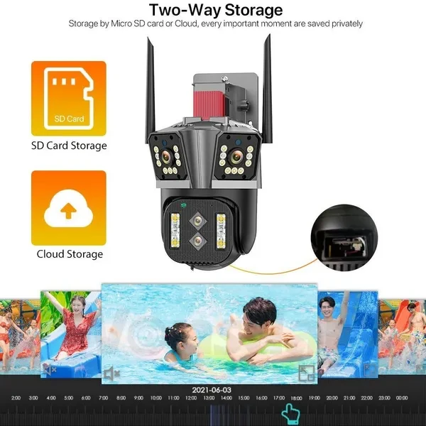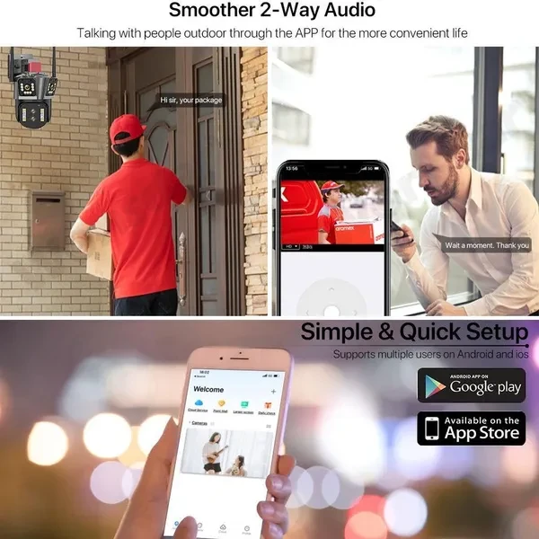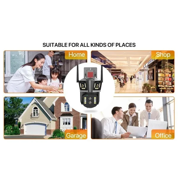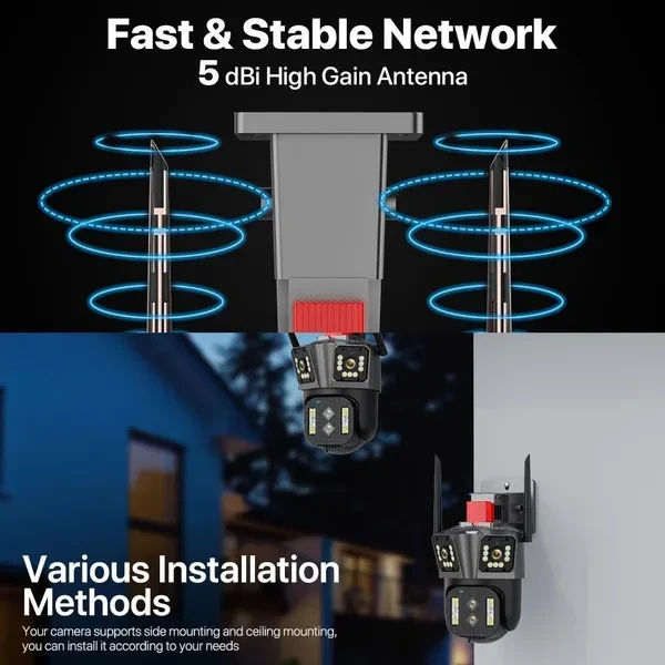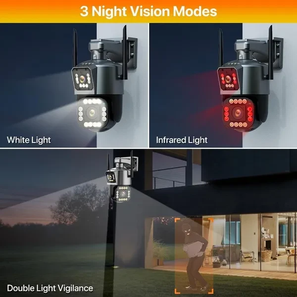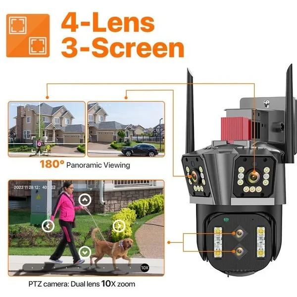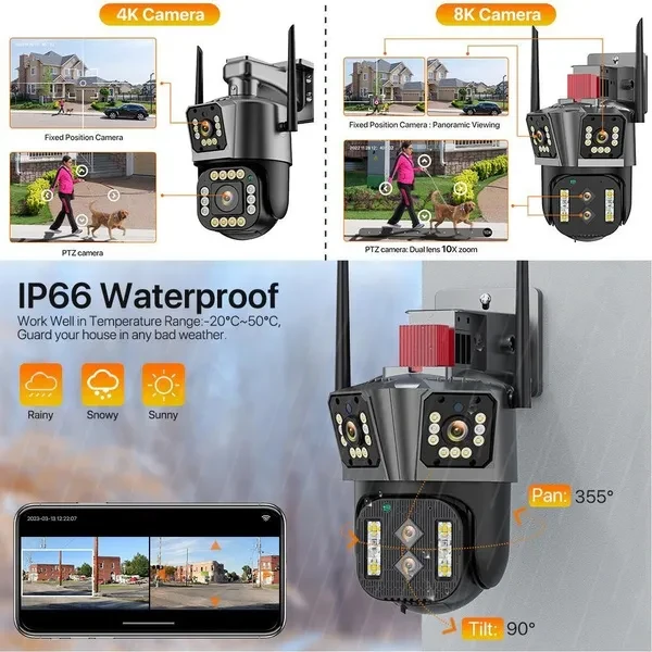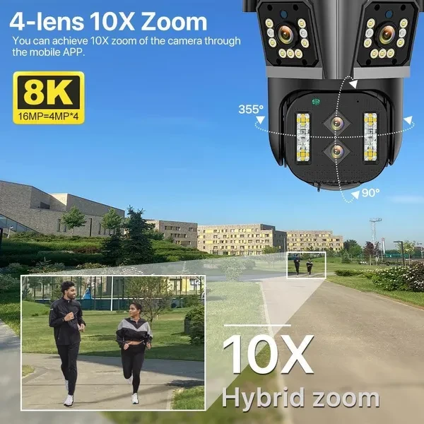 8K HD WIFI IP Camera 10X Hybrid Zoom Auto Tracking PTZ Camera Outdoor Four Lens Three Screen Security Cam 4K Street Surveillance
