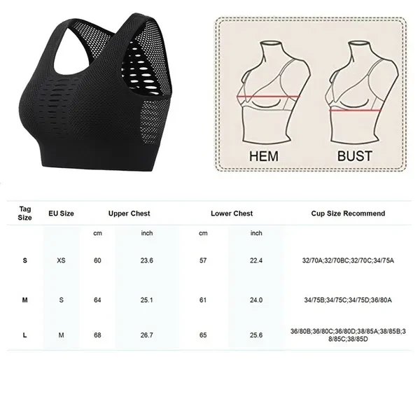 Package include: 1 Pc Bra Material: Nylon Color: Black, Pink, Blue Size: S, M, L, XL Size S: Upper bust:60; Under bust:57 Size M: Upper bust:64; Under bust:61 Size L: Upper bust:68; Under bust:65 Size XL: Upper bust:72; Under bust:69