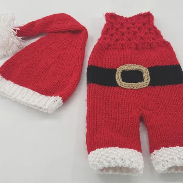 2-in-1 Infant Christmas Santa Outfit Soft Knitting Jumpsuit and Matching Hat Beanie Cap for Newborn Photography Props AJM