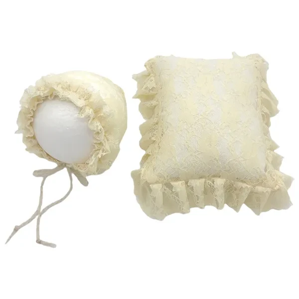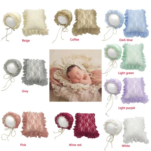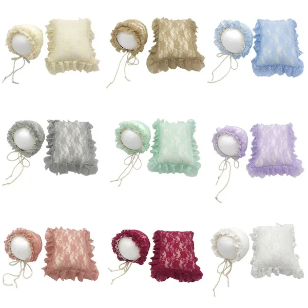 2 Pcs/Set Newborn Photography Props Baby Infants Lace Hat Pillow Posing Aid Photo Shooting Outfits Accessories RDV
