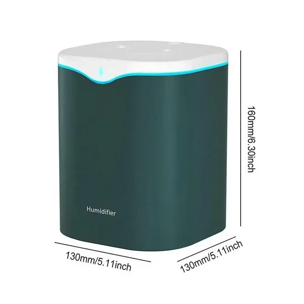 Name: Humidifier Weight: 380g Product capacity: 2000ML Use time: 12-20H Spray volume: 80ML/H Spray method: intermittent Applicable water quality: mineral water/tap water Style/color: white, green Use occasions: bedroom, home use, office, travel, Hotel, etc. Instructions for use: Press the double spray once to turn on the lights at the same time; press the second continuous spray, that is, spray to the left for two seconds, stop for 0.3 seconds, and spray to the right for 3 seconds, repeat the same; press the third time to turn off all. Long press the control switch light. When the power cord is plugged in for the first time, the indicator light will flash twice. notes: After receiving the product, please use it according to the instructions. When using it for the first time, the cotton swab needs to be soaked and moistened. Then fill the humidifier with water, install the cotton swab, and turn on the power to start working. Package list: 1x humidifier 1x USB data cable