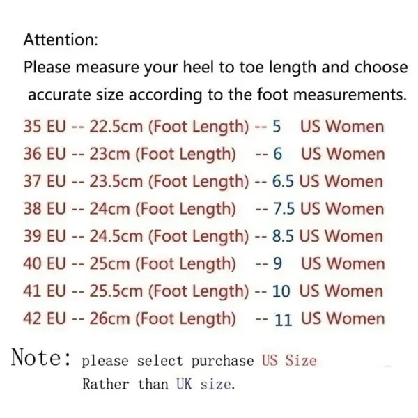 Dear friends,This is the woven style hand-made shoe,fashionable and breathable and leisurable. (1)Please Contact us in time if you have any problem About the product.We can help you solve most of the troubles,then give you Good service. (2)If you are not satisfied with the product that exists damaged or you did not receive the product and so on, you can immediately apply for a refund, we will return your money. Packing: 1 x Pair shoes If you want make a very correct choice you should choose by the size chart at the image ! Women's Shoe Size info: US 5.0=EU 35 =Foot length 225mm US 6.0=EU 36 =Foot length 230mm US 6.5=EU 37 =Foot length 235mm US 7.5=EU 38 =Foot length 240mm US 8.5=EU 39 =Foot length 245mm US 9.0=EU 40 =Foot length 250mm US 10= EU 41 = Foot length 259mm US 11= EU 42 = Foot length 267mm Welcome to our shop for more choice. Wish you a happy shopping!