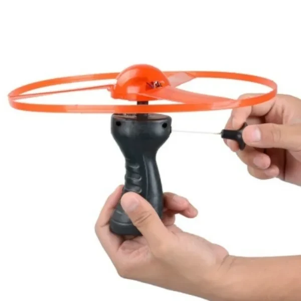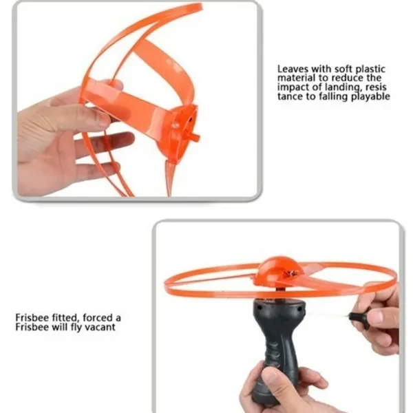 Gender: Unisex Type: Flying Disc Age Range: > 3 years old Material: Plastic Type: Flying Disk Color: Random color Instructions for use: Turn on the electronic switch on the flying saucer, you can change it into red, green and blue LED lights; put the flying saucer on the handle, pull the pull cord on the handle, the flying saucer spins, very dazzling, attracting the children Cheering! The handle can be pulled up on the ground, and it can be used as a gyro, which is very popular among children..