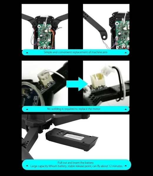 2.4GHz working frequency with strong anti-interference, long distance control and fast response ability, the drone will not interfering with each other.