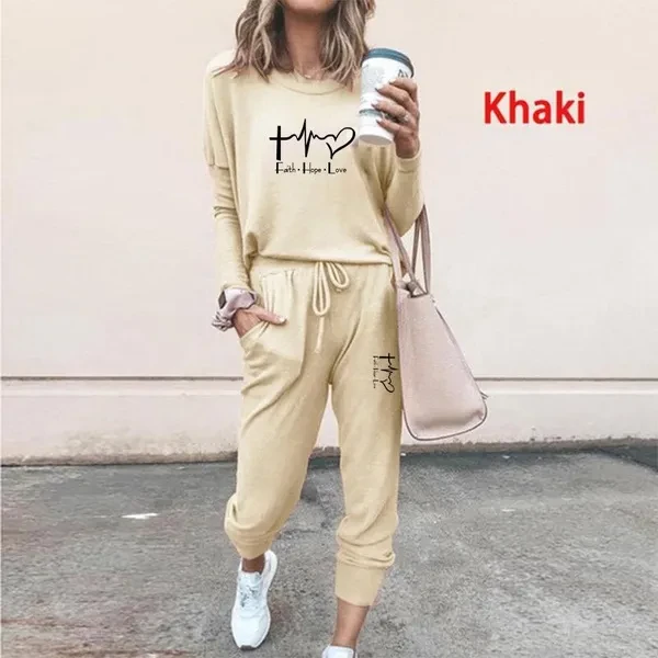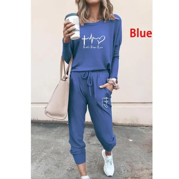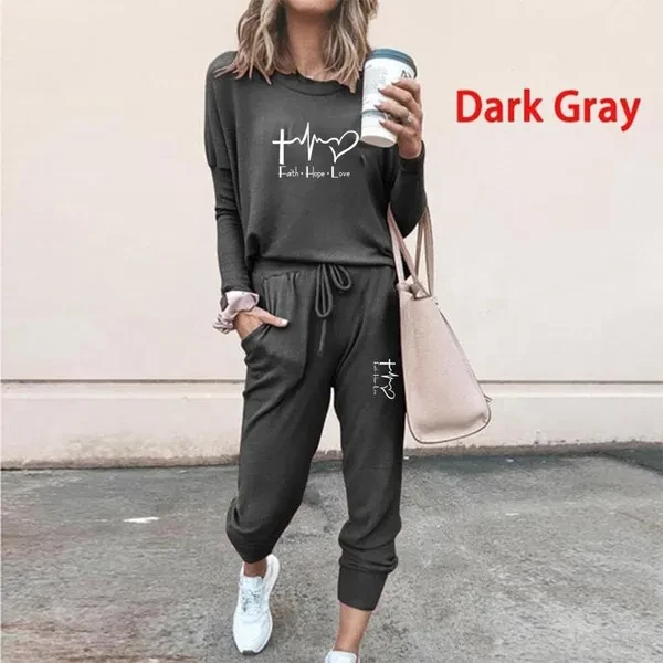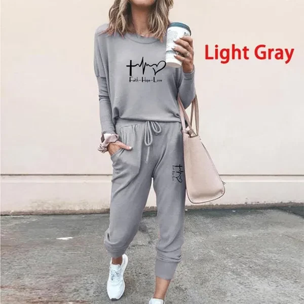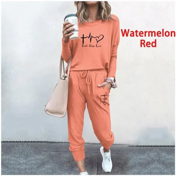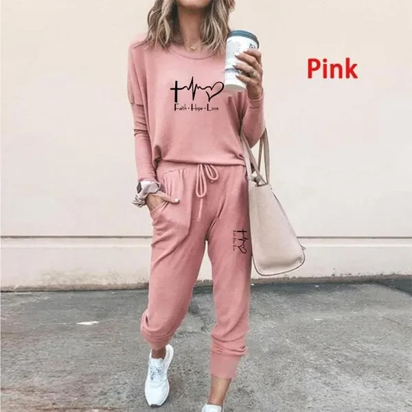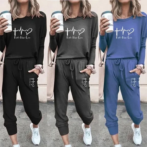 2022 Faith Hope Love Womens Clothes Sports Wear Long Sleeved Hoodies and Pants Tracksuit Casual Pajamas Suits