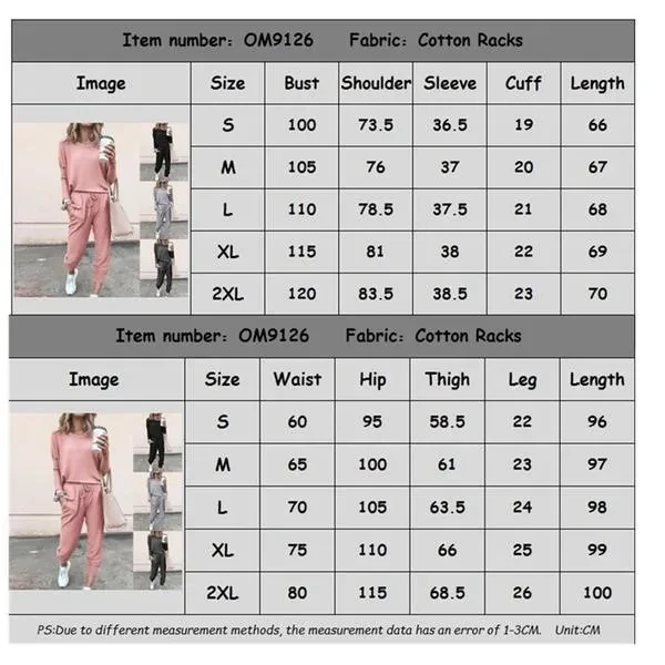 Welcome to our Store! We will provide you product and service. product detail: Gender: Women main material: polyester cotton Sleeve type: long sleeve package: 1pc top 1 long pants Color:black/blue/pink/khaki/light grey/dark grey/Watermelon red Size:S-2XL 1.Our size table is based on actual product,please allow 1-3cm differs due to manual measurement. 2.Please measure your body correctly,and then refer to our detail size information to choose a suitable size. 3.We ship to worldwide,please make sure your address is correct before order. 4.If you do not receive the item ,please contact us,we will do our best to solve the problem.If you have any question please contact us at your free time
