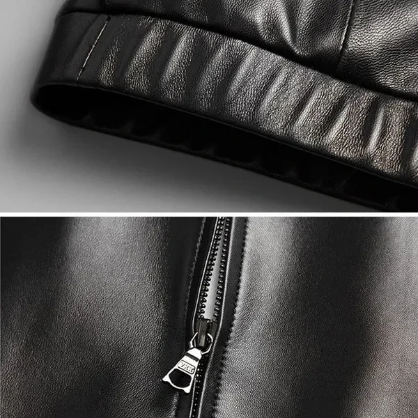 Applicable Season : Spring and Autumn Applicable Scene : Business Pattern Type : Solid Closure Type : zipper Collar : Turn-down Collar Model Number : PY120 Decoration : NONE Lining Material : Polyester Style : Smart Casual Type : Regular Detachable Part : NONE Hooded : Yes Thickness : STANDARD Sleeve Length(cm) : Full Clothing Length : Regular Material : Sheepskin Origin : Mainland China CN : Guangdong Outerwear Type : Leather & Suede Gender : MEN