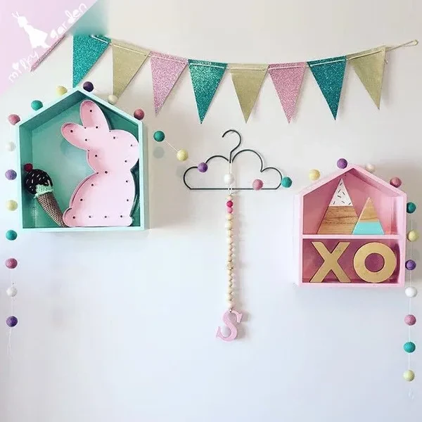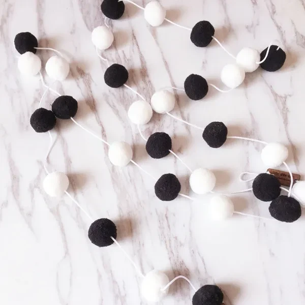 2M 30 pcs Wool Felt Balls Kids Room Wall Decor Hanging Nursery Pom Pom Garland