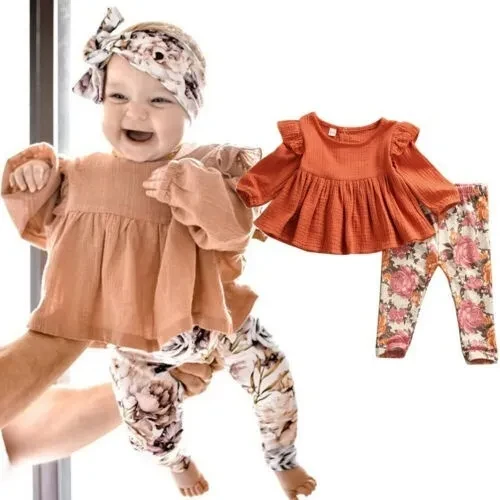 Hello! Welcome to our store! Quality is the first with best service. customers all are our friends. Fashion design,100% Brand New,high quality! Style: Fashion Material: Cotton Blend Color: As picture Size:80/90/100/110/120/130 There is 2-3% difference according to manual measurement. Please check the measurement chart carefully before you buy the item. Please note that slight color difference should be acceptable due to the light and screen. What You Get:1 x Tops + 1 x Pants