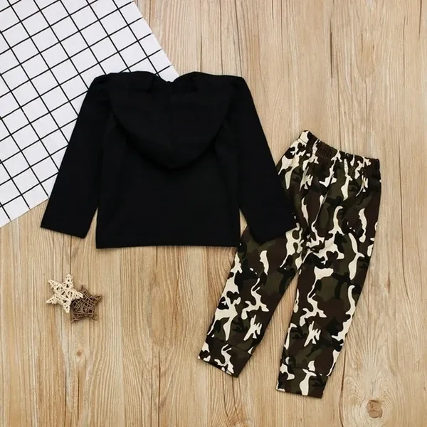 2Pcs Toddler Kids Boy Camouflage Clothes Mama's Boy Letter Print Hoodie Tops+Camo Pants Outfit Sets for 1-6 Years