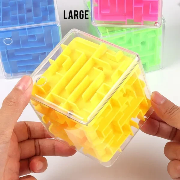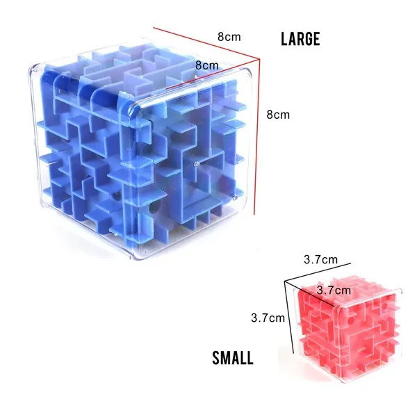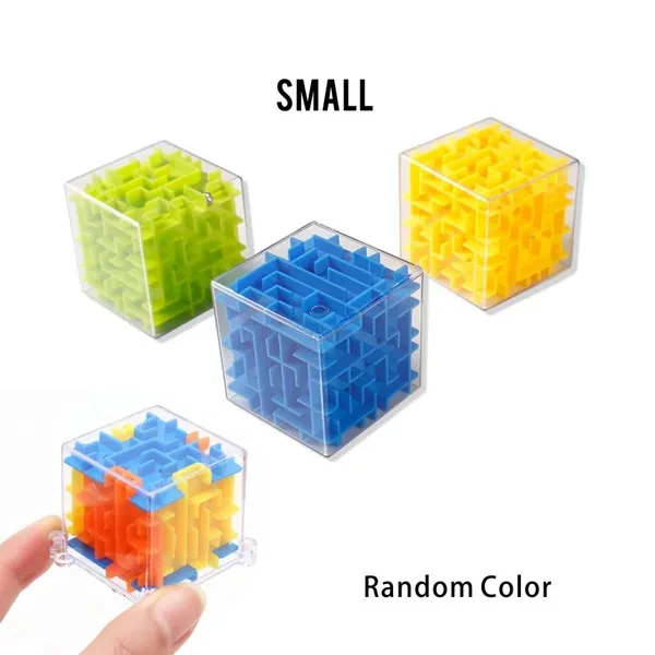 Material: ABS plastic safety Applicable age: young (7 to 14 years of age), youth (15 to 35 years old), middle-aged (36-60 years old), children (3-6 years old) and elderly (61 +) Color: Random Color(green,blue,yellow) Large Size: 8*8*8cm Small Size: 3.7*3.7*3.7cm Introduction: Around the maze is a puzzle game. Stereo six sides rotate 720 degrees of innovative design, greatly developed the ability of children, if the potential, play a simple but have knowledge greatly, need hands and brain together, greatly enhance the child's hands and brain coordination ability!
