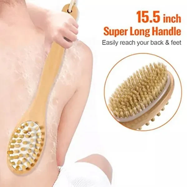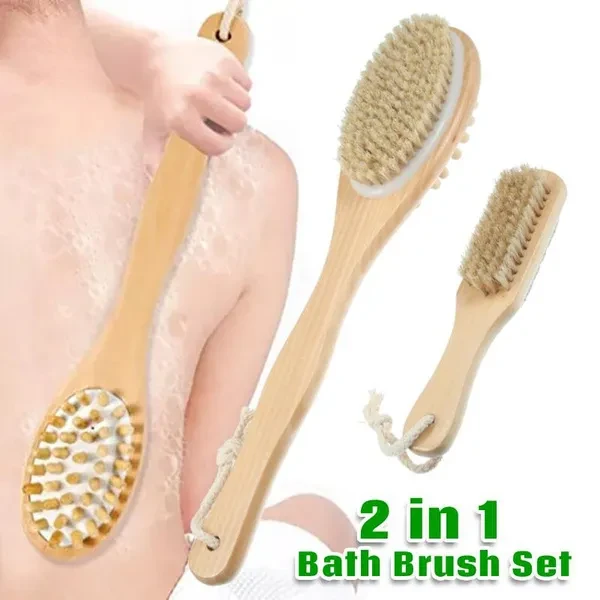 Description: Dry brush set: Including double-sided bath massage brush, double-sided exfoliating brush and gloves, wet and dry use, to meet your daily skin cleaning needs. Good Material: Our body brushes composed of hemu and dense bristles, Designed with smooth hemu and dense bristles that won't cause fall off after long-term use. Deep Cleaning: The exfoliating dry skin body brushing, using in a bath or shower, helps to eliminate clogged pores and remove dead skin, fight dry skin, rough skin and other skin problems, relieves stress, makes your skin softer and smoother. Please Note: Rinse clean after use and hang it in a ventilated place to dry in time. How To Use: Step 1: Wet the brush head with warm water. Step 2: Apply the right amount of body wash. Step 3: Press the foam gently with the palm of your hand Step 4: Clean your body with the brush. Step 5: Rinse the brush and hang it to dry. Specifications: Product Name: Dry Brush Set Material: Plastic & Wood Quantity: 3 Pcs Color: Brown Wooden Dry Brush Size: 38 x 8 x 5.5cm / 14.96" x 3.15" x 2.16"(L*W*H) Exfoliating Brush Size: 18.5 x 3.5 x 4cm / 7.28" x 1.38" x 1.57"(L*W*H) Package List: 1 Pcs Wooden Dry Brush 1 Pcs Exfoliating Brush 1 Pair Gloves