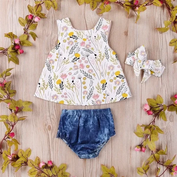 WELCOME - Quality is the first with best service. customers all are our friends. - Fashion design,100% Brand New,high quality! - Material: 100% Cotton & Denim Pants - Color: As shown in the pictures - Listing Includes: 3PCS Baby Girl Outfit - Sizes: 70/80/90/100/110Cm Size Chart: Attention plz: If your kid is chubby, we recommend choosing a larger size, thanks. Measurement (Cm) Size Age Top Length Bust *2 Waist *2 70 0-6 Months 32.5 25 18 80 6-12 Months 35 26 19 90 12-18 Months 37.5 27 20 100 18-24 Months 39 28 21 110 2-3 Years 41.5 29 22 There is 2-3% difference according to manual measurement. please check the measurement chart carefully before you buy the item. 1 inch = 2.54 cm Please note that slight color difference should be acceptable due to the light and screen. What You Got: 1 x Sleeveless Top & 1 x Headband & 1 x Pants