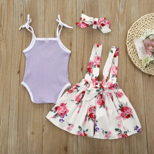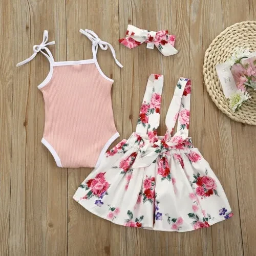 3PCS Newborn Infant Baby Girl Summer Princess Tops Romper Bib Skirt Dress Headband Outfits Clothes