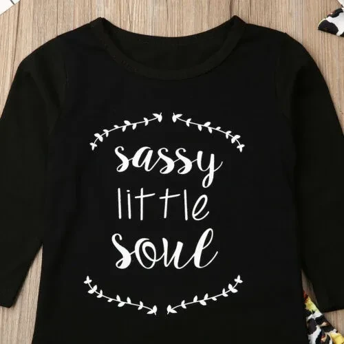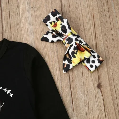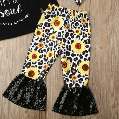 3pcs Toddler Baby Girl Leopard Outfit Little Sister T-Shirt Tops Sunflower Flares Pants Bell-Bottoms Headband Clothes
